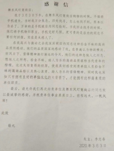 舞东风从成立发展到现在,一直坚持为顾客提供优质的服务,正是有了0437灯笼街分店这样可爱的同事们拾金不昧、乐于助人的高尚品质,才使我们赢得了社会的认可,从而不断壮大。