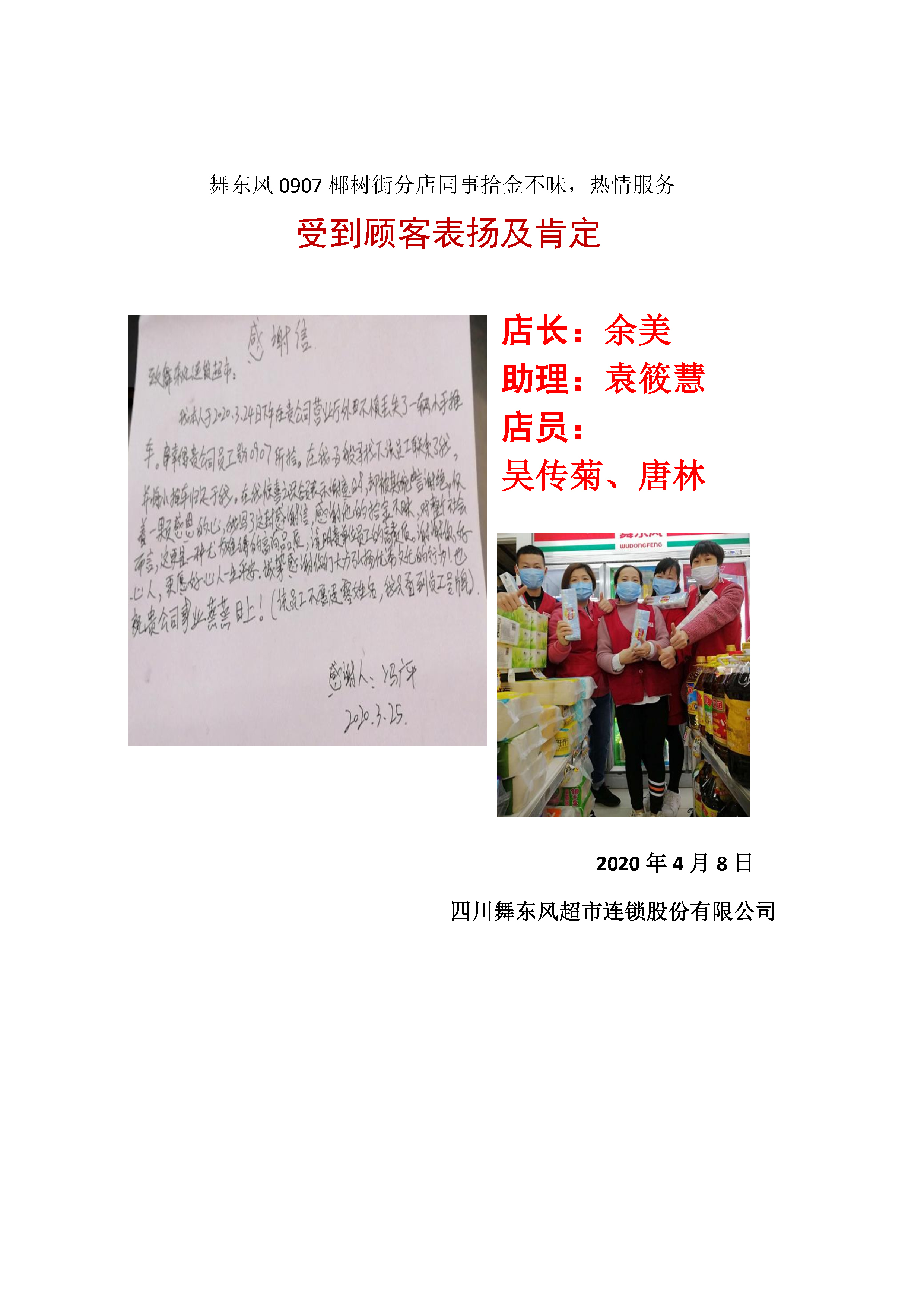 0907分店感谢信