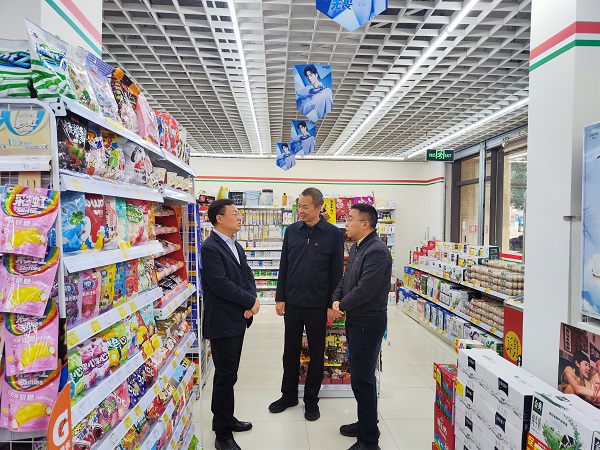 辜常委一行来到舞东风位于成都市高新区的线下门店,详细参观了超市的各个区域,包括基础食品区域、休闲食品区域、饮品区域以及日用品区域等。公司董事长张睿向辜学斌常委介绍了舞东风的发展历程、经营理念以及未来发展规划,并对企业发展过程中遇到的困难与问题进行了深入的探讨。